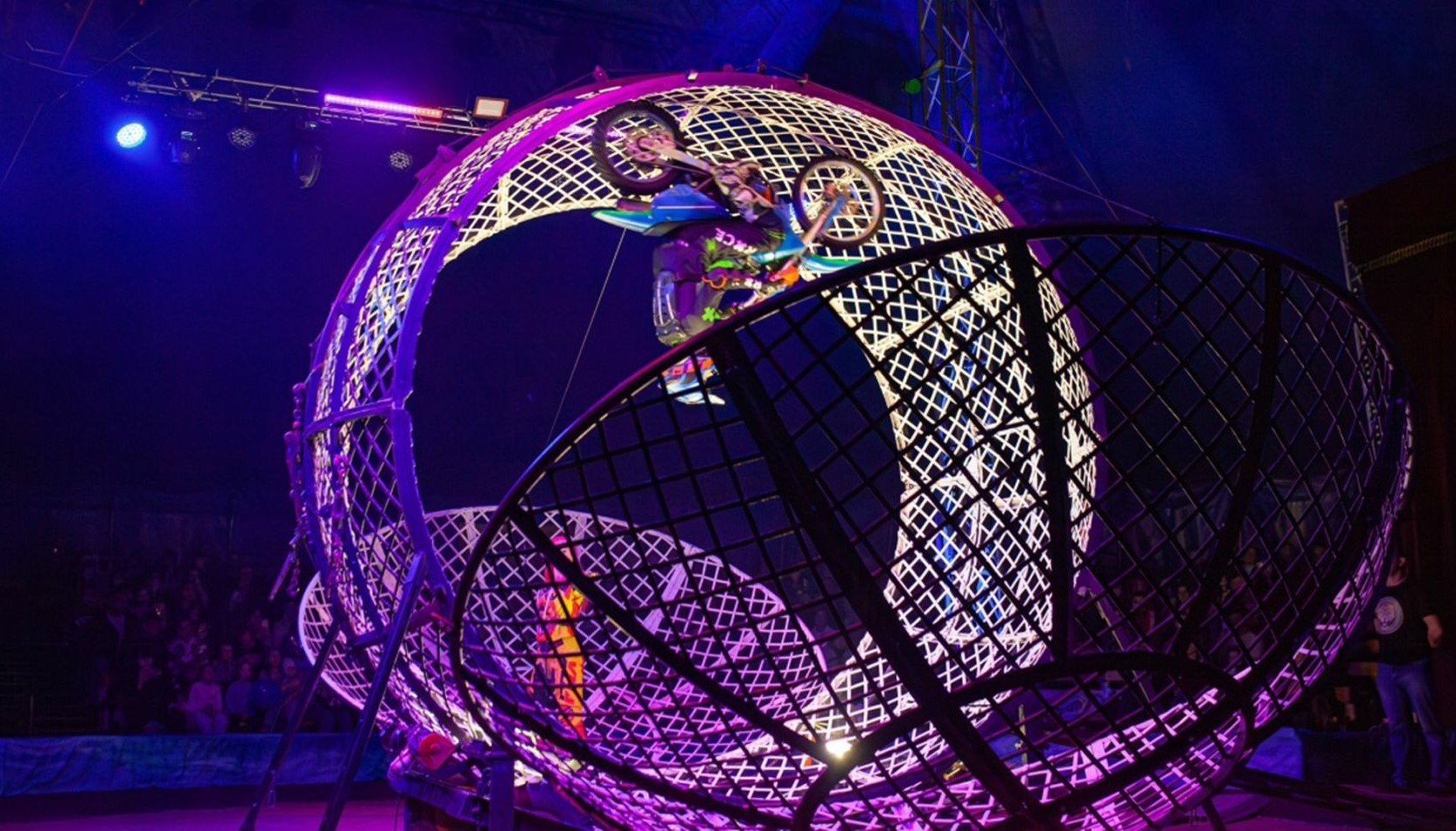 • Бесстрашные мотокаскадеры в вихре скорости внутри стальной сферы!